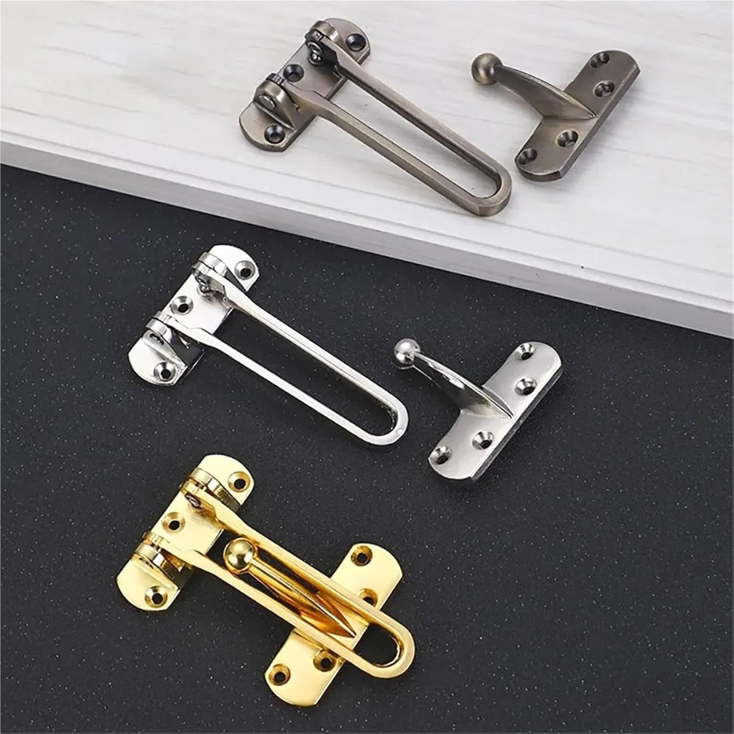 Material: Zinc AlloySize: 104*63mm(4.09*2.48in)Quantity: 6pcsNote:1. The real color of the item may be slightly different from the pictures shown on website caused by many factors such as brightness of your monitor and light brightness.2. Please allow slight manual measurement deviation for the data.Before installation, confirm the door frame is flat and install at a height out of children’s reach for better safety. Use a drill to align marked points and fix accessories tightly to avoid loosening. Clean with a soft cloth daily—avoid corrosive cleaners. Regularly check structural stability and reinforce loose parts promptly to maintain effective protection long-term