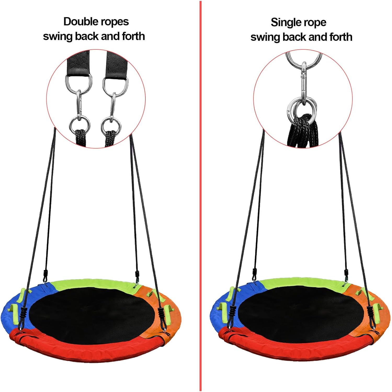 Turn Your Backyard into a Thrilling Adventure Park with the PACEARTH Titan 900! Welcome to the next generation of outdoor play—where safety meets extreme capacity and endless fun. The PACEARTH 40-Inch Heavy Duty Saucer Swing isn't just another backyard toy; it's the ultimate family gravity machine, engineered to create memories that will last a lifetime. With an industry-leading 900-pound weight capacity, we’ve redefined what a tree swing can be, making it the safest and most exhilarating choice for families, schools, and community parks. Why the PACEARTH Titan 900 is the #1 Choice for Smart Families: Unshakeable Safety, Unmatched Strength: We understand that "family fun" starts with "family safe." Every component, from the ultra-strong 6-strand ropes to the industrial carabiners and wide-distribution tree straps, is rigorously tested. Our 900-lb rating isn't just a number—it's our promise of unwavering security, allowing you to join in the fun with your kids without a second thought. The Ultimate Comfort & Social Experience: Ditch the cramped, single-person swings of the past. Our expansive 40-inch circular design is a social hub in the air. Kids can lie back and watch the clouds, sit facing each other for conversations, or spin together in fits of laughter. It’s the perfect blend of a swing, a spinning top, and a cozy floating disc. Superior Engineering Meets Effortless Setup: We believe great fun shouldn't require complicated assembly. Our intuitive, all-inclusive kit is designed for a quick, tool-free installation. The adjustable rope system lets you easily customize the height as your children grow or to accommodate different tree branches, ensuring the perfect swing arc every time. Defies the Elements, Year After Year: Crafted from the same durable materials used in commercial playgrounds, the PACEARTH swing laughs in the face of harsh weather. The high-density seat withstands impacts and temperature extremes, while the rust-proof hardware and UV-stabilized ropes ensure vibrant, reliable performance through sun, rain, and snow. This is a one-time investment in decades of delight.